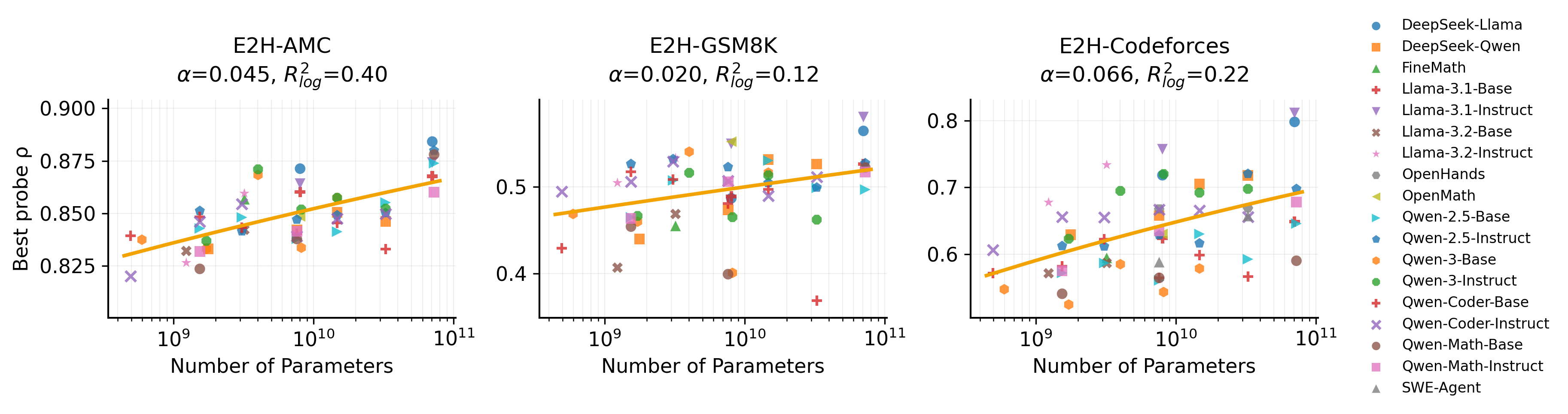 We show that LLMs linearly represent the difficulty of math and coding problems.